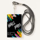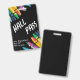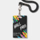 Teacher student hall pass with black background and crayons. Comes with lanyard attachment. Great for elementary school and middle school classrooms. Customise the teacher and class information.