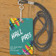 Teacher student hall pass with green background and crayons. Comes with lanyard attachment. Great for elementary school and middle school classrooms. Customise the teacher and class information.