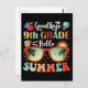 Ninth grade graduation announcement tee With cute summer sunglasses and groovy text quote design that read, Goodbye 9th grade Hello Summer, for women, men, girls and boys, enjoy your summer holiday with great outfit. Perfect apparel for 9th grade teacher, student, graduated son, daughter, schoolchild, sister, brother, nephew, niece, friend... lovely 9th grade graduation vibes present for last day of school, graduation day, summer holiday...