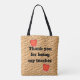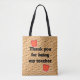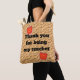 Thank a special teacher for all they do whether it is during the holidays or at the end of the school year. This tote bag offers a fitting way to express your appreciation gifting your teacher a great tote bag to carry items back and forth or use for grocery shopping. The light brown, textured background resembles a basket weave pattern. Two red apples accent "Thank you for being my teacher". All text can quickly and easily be customised to suit your needs.