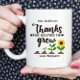 Thanks for helping me grow, teacher mug with sunflower life cycle. Makes a great personalised teacher appreciation, back to school or end of school year gift.
