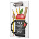 Teacher's Apple in a Blackboard Mug on a clip board. Give an Apple for Teacher in an old-school Blackboard Mug, with "Pencil" Teaspoon, Tea Tag, Ruler and Yellow Pencils. Add your own message or text. Choose just the perfect gift for teachers on a huge range of fun items. By Anni Arts.