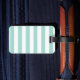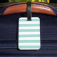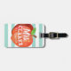 A fun and lighthearted seafoam green striped Luggage tag featuring a stylised apple illustration. Inside of this apple is your favourite teacher's name in a playful style font.
