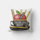 Teacher's Apple in a Blackboard Teacup - on a cushion. Give an Apple for Teacher in an old-school Blackboard Teacup, with Thank You "Pencil" Teaspoon, Tea Tag, Ruler and Yellow Pencils. Back has apple repeat design. Choose just the perfect gift for teachers on a huge range of fun items. By Anni Arts.