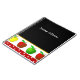 Fun teacher's notebook done in black, with graphics of colourful apples and a red and white polka dot band, across the bottom. White text is fully customisable to read anything you want. Personalise for yourself or as a great gift idea to your favourite teacher.