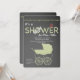 A charming invitation based on a chalkboard background which features a baby stroller, an apple and a delicate vine border. Perfect for schoolteachers' baby shower celebrations. Want to save money? Print this design on basic, square corner paper.