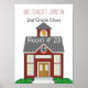 Classroom door poster, with graphics of a cute little red school house. Personalise the red, white, and black text to suit your classroom's needs.