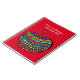 School teacher's notebook done in red, with graphics of a colourful folk art style apple. Personalise the white text, for yourself or your favourite teacher.