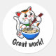 Let your students know they've done a great job with this fun Japanese lucky cat sticker! This cute feline is feeding on a nice noodle bowl! The "Great work!" caption can be personalised... just type your favourite praise in the box above and watch the preview image update.