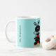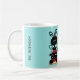 Fun school teacher's mug done in turquoise with cute graphics of a black and red ladybug standing on a pencil. Black graphic text reads, The best teachers teach from the heart. Personalise the custom black text, on the side, to suit your needs.
