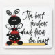 Cute teacher's mouse pad, with adorable graphics of a ladybug standing on a large pencil. Graphic text reads, The best teachers teach from the heart. Makes a great gift idea for the teacher on your list.