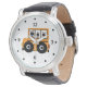 Stylish Teacher's or school bus driver's wrist watch featuring cute graphics of ladybugs on a yellow and white polka dot school bus, against a white background. Black numbers and dots represent the hours. Customise to add any text you want.