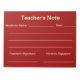 Send a note home with your student with our custom Teacher's Note Notepad. Space is provided for your student's name, the date, a note, and your signature. You can be assured that your student's parent is aware of an important issue or event by asking your student to return your note with his or her parent's signature.