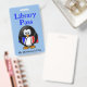 Fun school library hall pass done in blue with cartoon graphics of an owl in glasses holding books. Personalise the custom text to read what you want.