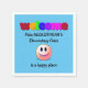 Cute bright blue Teacher's Welcome to My Class paper napkins, showing a bright colourful WELCOME followed by wording which reads (insert your name here)'S CLASS IS A HAPPY PLACE. This text is CUSTOMIZABLE so you can add your name and class or create your own text. There is also a smiling face icon. You can use these Welcome party napkins to welcome your new students back to school with a special welcome party. Matching party supplies and gifts are available. Also in white.