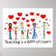 Great for classroom wall decor. Perfect gift for the special teacher in your life. A GREAT way to let educators know they are appreciated. Features kid artwork in vibrant colours portraying bigg'uns and littl'uns holding hands and surrounded by hearts.