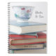 Stack of colourful used books with an old teacup on top - customise with your information.