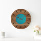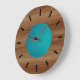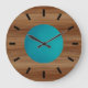 Teak look Teal Turquoise Blue modern Large Clock