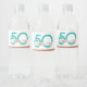 50 and Fabulous birthday water label in teal and rose gold. Happy birthday ______ on both sides.