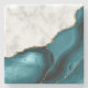 This elegant coaster features a digital image of white marble and teal agate trimmed with faux gold glitter.