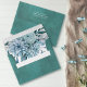 Teal and aqua blue flowers, foliage summer wedding envelope