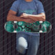 Teal and Black Bubbles Digital Fluid Art Cells Skateboard