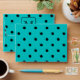 A polka dot pattern in teal and black with a monogram initial letter that can be personalised.