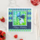 Designer tableware, large paper dinner napkins in a patterned design in blue, teal and bright lime green floral print. Happy birthday text can be personalised to any occasion, or for everyday. Text, decorative background or floral image are all removable.