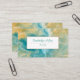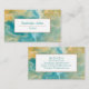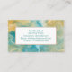 Teal, turquoise, blue, tan and gold marble fluid unique artsy modern art business cards.