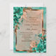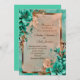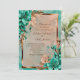 Teal and copper flower wedding invitation