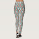 These leggings an art deco design of arches and upside-down Ys repeating across the design in teal and copper on a field of white. Want different colours? Message me.