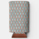 This seltzer can cooler has an art deco design of arches and upside-down Ys repeating across the design in teal and copper on a field of white. Want different colours? Message me.