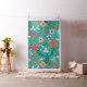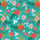 Cottage chic flower pattern fabric in accents of coral pink, turquoise blue (teal) and burnt orange.