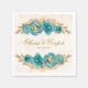 Teal and Creamy Gold Watercolor Florals Wedding Napkin