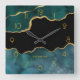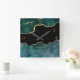 Teal - turquoise and faux gold foil agate stone wall clock customisable with your text.