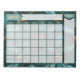 This perpetual monthly calendar design features a teal and gold floral pattern. It contains enough pages to last for 40 months. Please note that only the text, font, and font color may be customized, as all of the boxes and shapes are part of the background image.