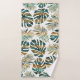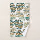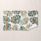 Teal and gold patterned tropical leaves brush paint strokes bath towel set. It showcases patterned tropical leaves with brush strokes in teal blue and gold and confetti. You can customise it and add your images or graphics.