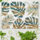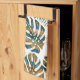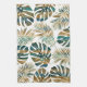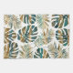 Teal and gold patterned tropical leaves brush paint strokes kitchen towel. It showcases patterned tropical leaves with brush strokes in teal blue and gold and confetti. You can customise it and add your images or graphics.