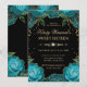 Teal and Gold Roses Floral Sweet Sixteen Invitation