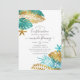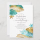 Teal - turquoise and gold watercolor tropical foil foliage confirmation invitation with elegant handwriting typography designed to be quickly and easily customised to your event specifics.
