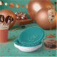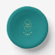 Create personalised wedding paper bowls. Features a rose design in teal and gold along with the name of the wedding couple and the date of the wedding. Just change the text to fit your needs. Use the template to personalise.