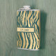 Teal and Gold Wild Animal Print with Name Hip Flask