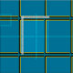 This fabric contains a teal check pattern with yellow-gold and black trim.