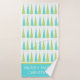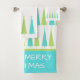 This cute bath towel set features fun Christmas trees in bright teal blue and lime green on solid white. Personalise with your choice of holiday greeting or special text.