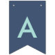 Party Bunting with Solid Teal and Navy Lettered Flags with a Teal/Navy Dotted Accent Flag.