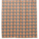 This shower curtain has an art deco design of teal fans repeating across the design on a field of orange.
