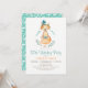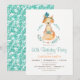 Teal and Orange Fox birthday party invitation. Invite features woodland girl fox and turquoise leaf pattern.