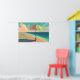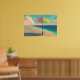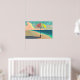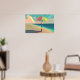 Teal and Peach Beach, Mountain and Umbrella Poster