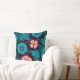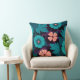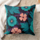 Teal and Peach Floral Pattern on Purple Background Cushion