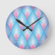 Teal And Pink Petal Pattern Round Clock